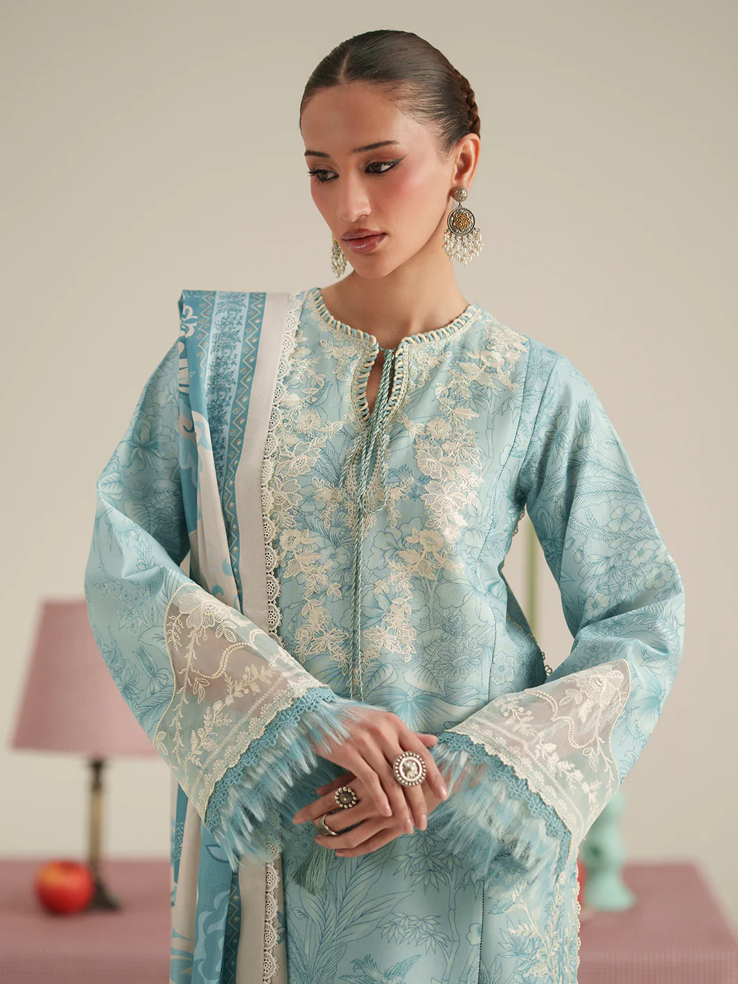 | Embroidered Sleeves Motifs on Dyed Organza | 2 Pieces |