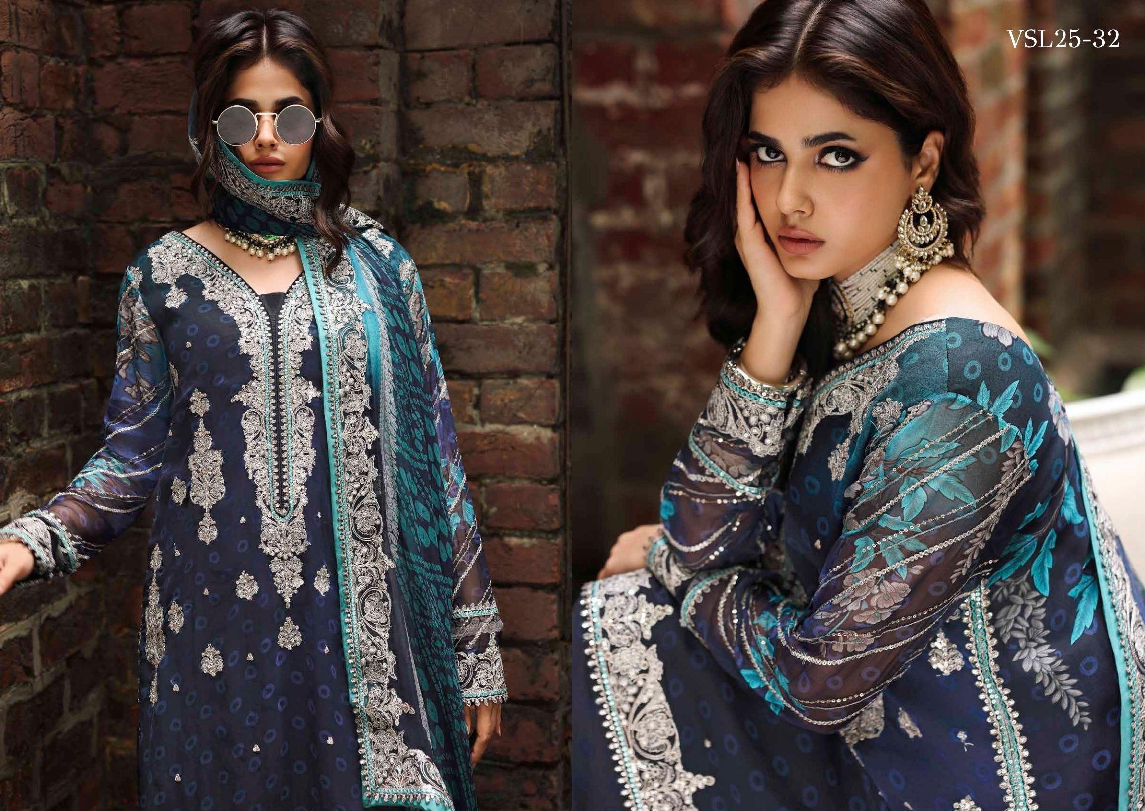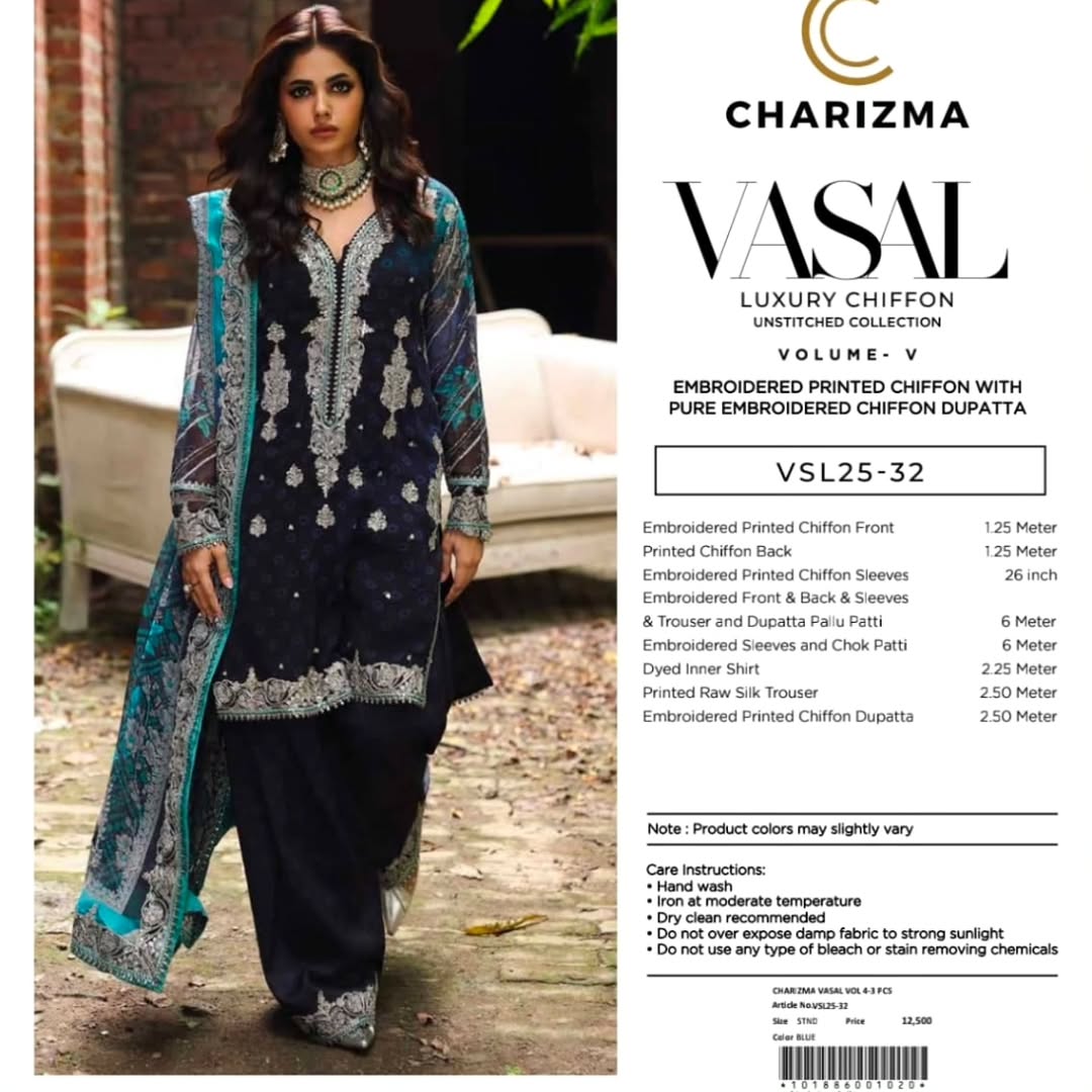 Embroidered Front & Back & Sleeves & Trouser and Dupatta Pallu Patti 6 Meter