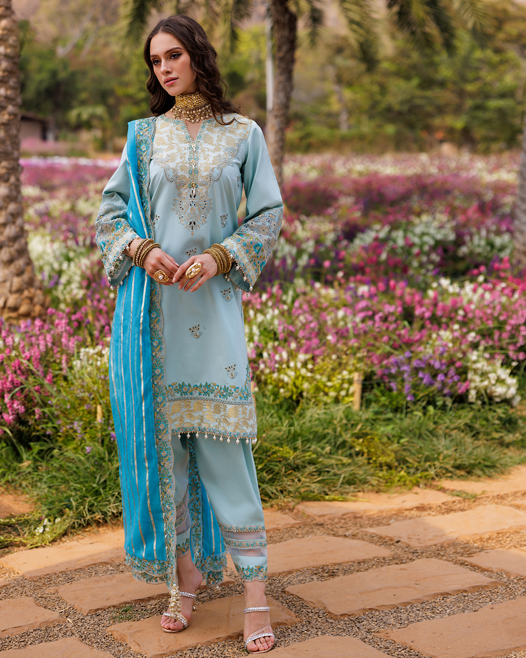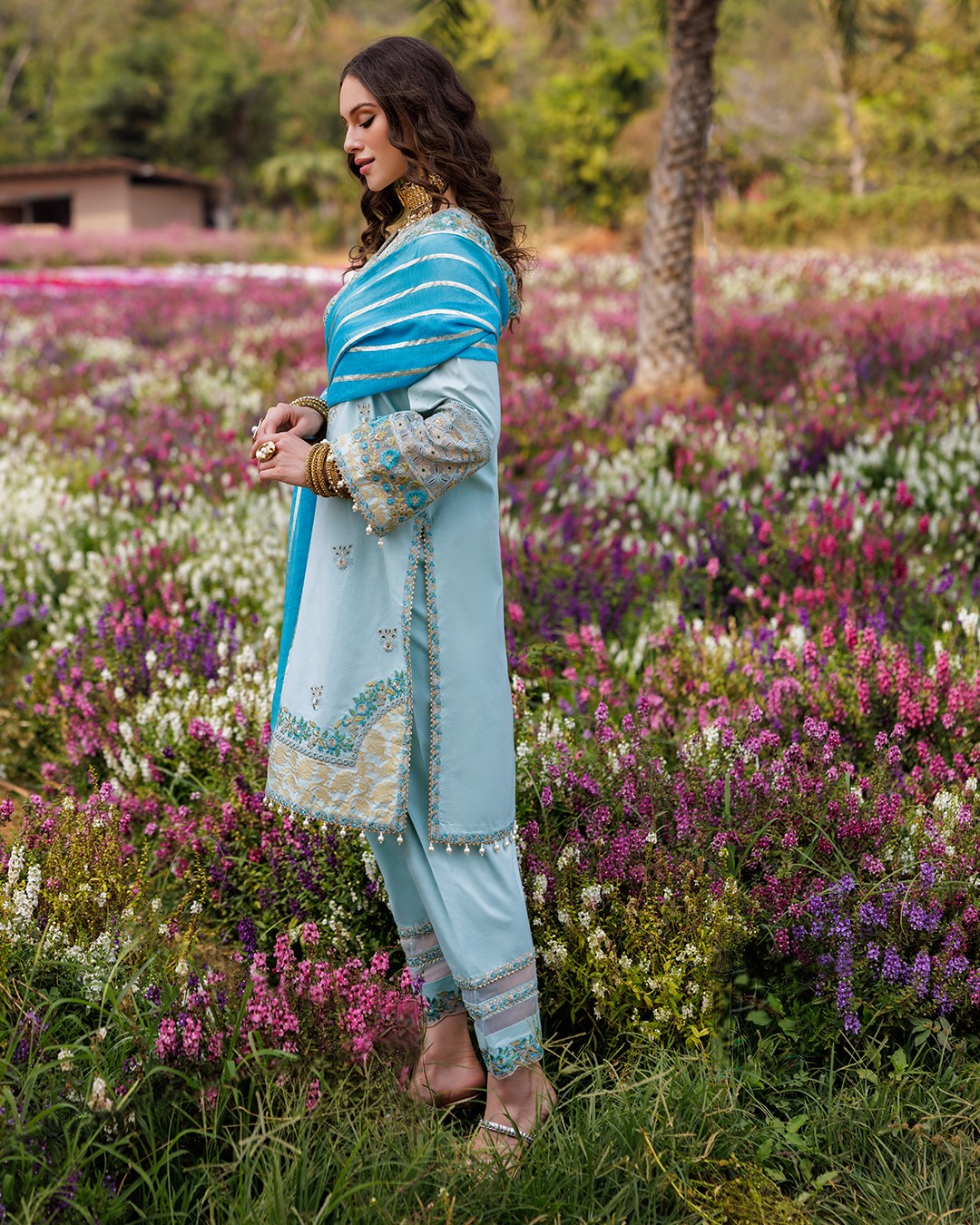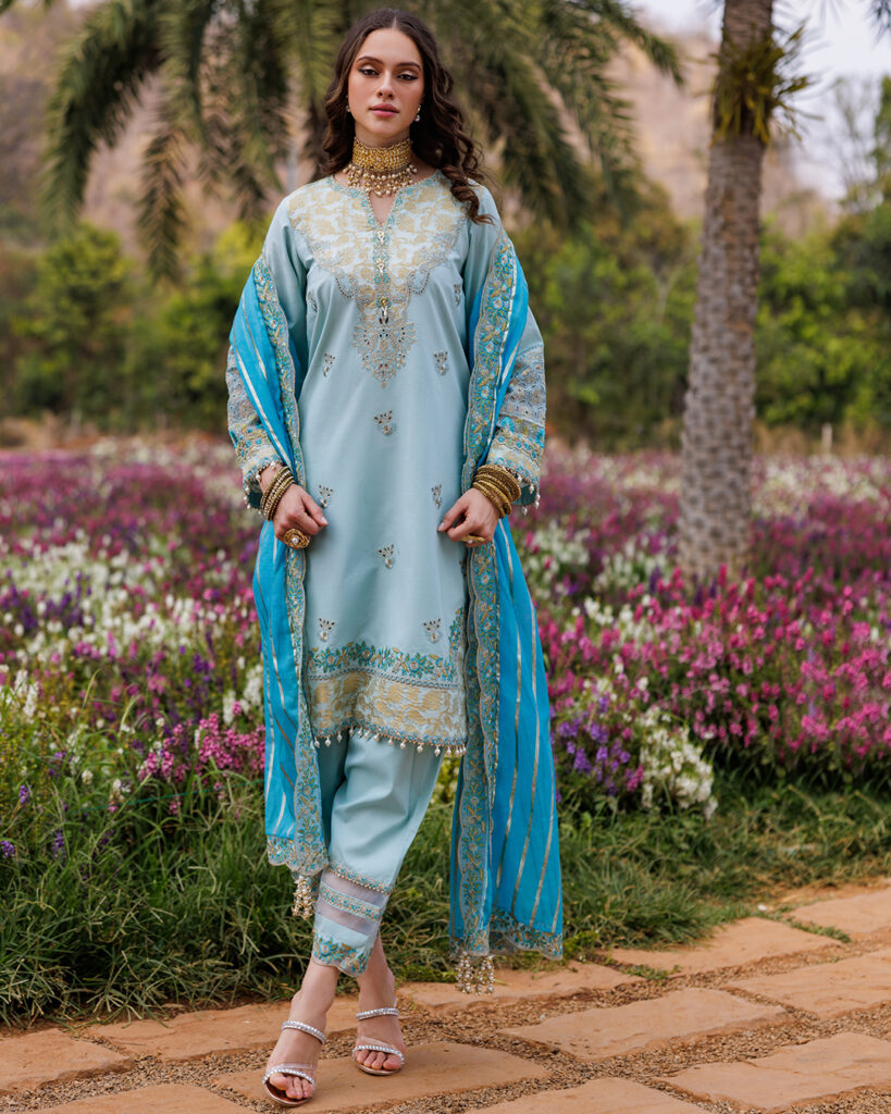 Our Jacquard Lawn Festive Edit showcases airy textures, detailed embroideries, and a soothing summer palette perfect for Eid festivities with a modern yet cultural appeal.