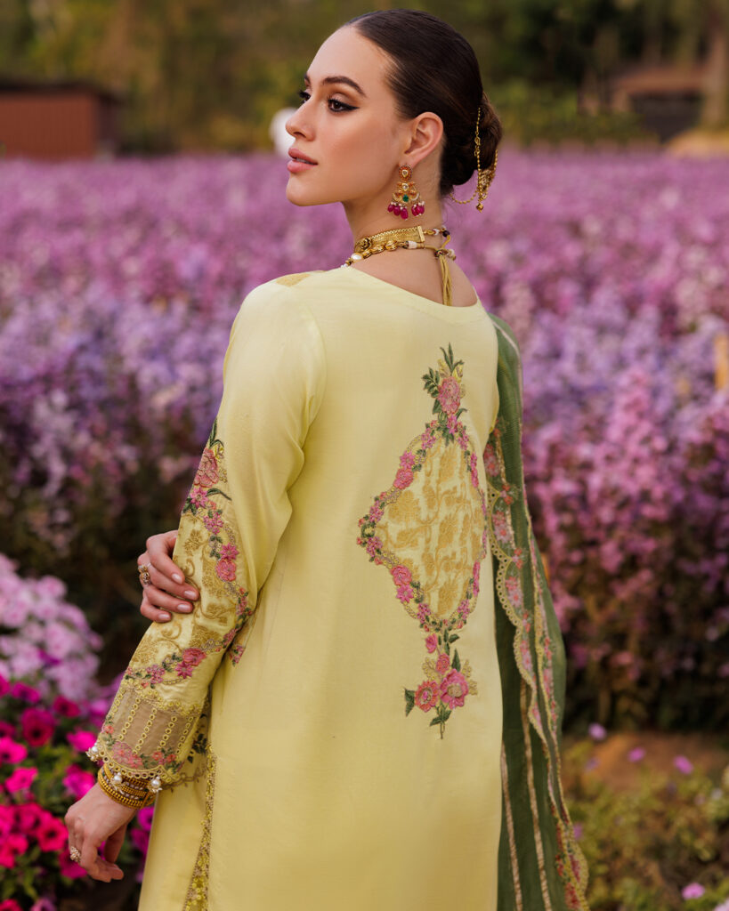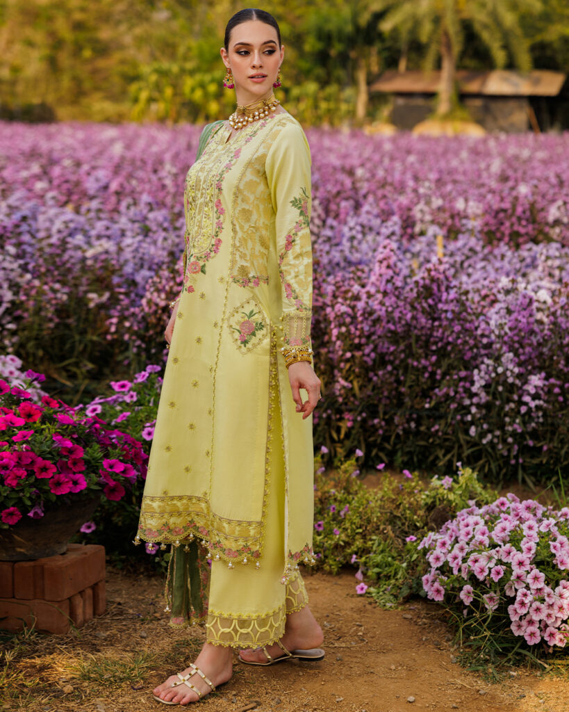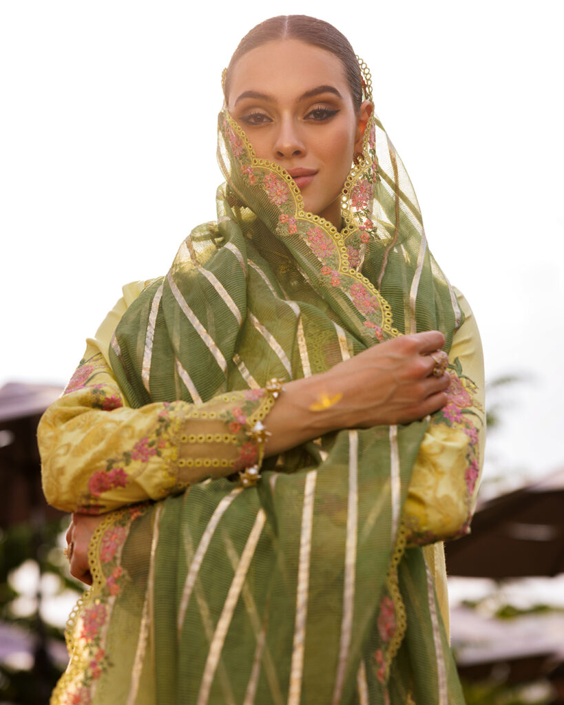 Our Jacquard Lawn Festive Edit showcases airy textures, detailed embroideries, and a soothing summer palette perfect for Eid festivities with a modern yet cultural appeal.