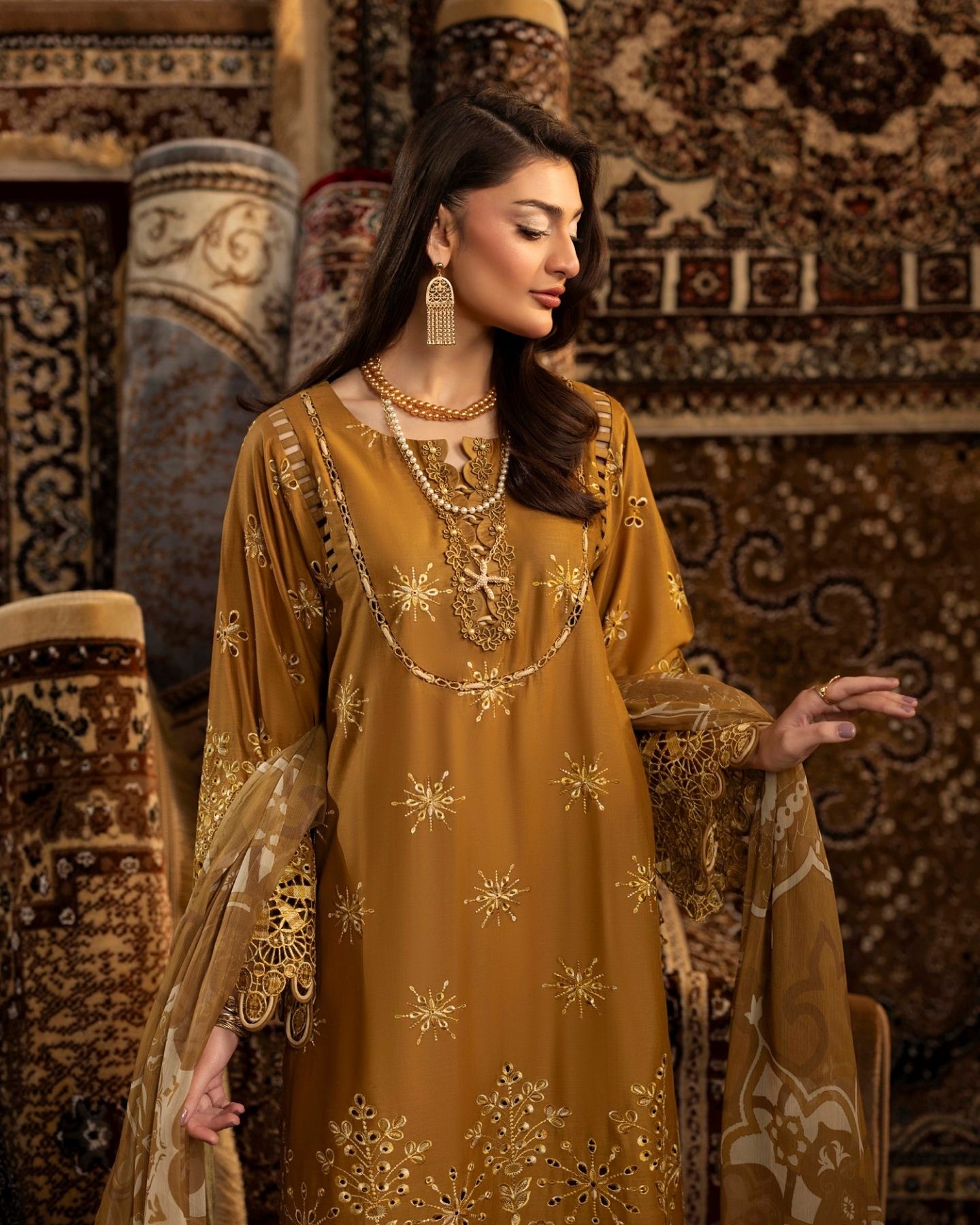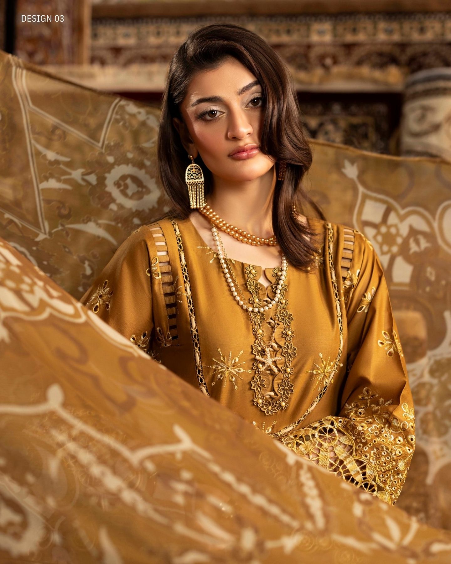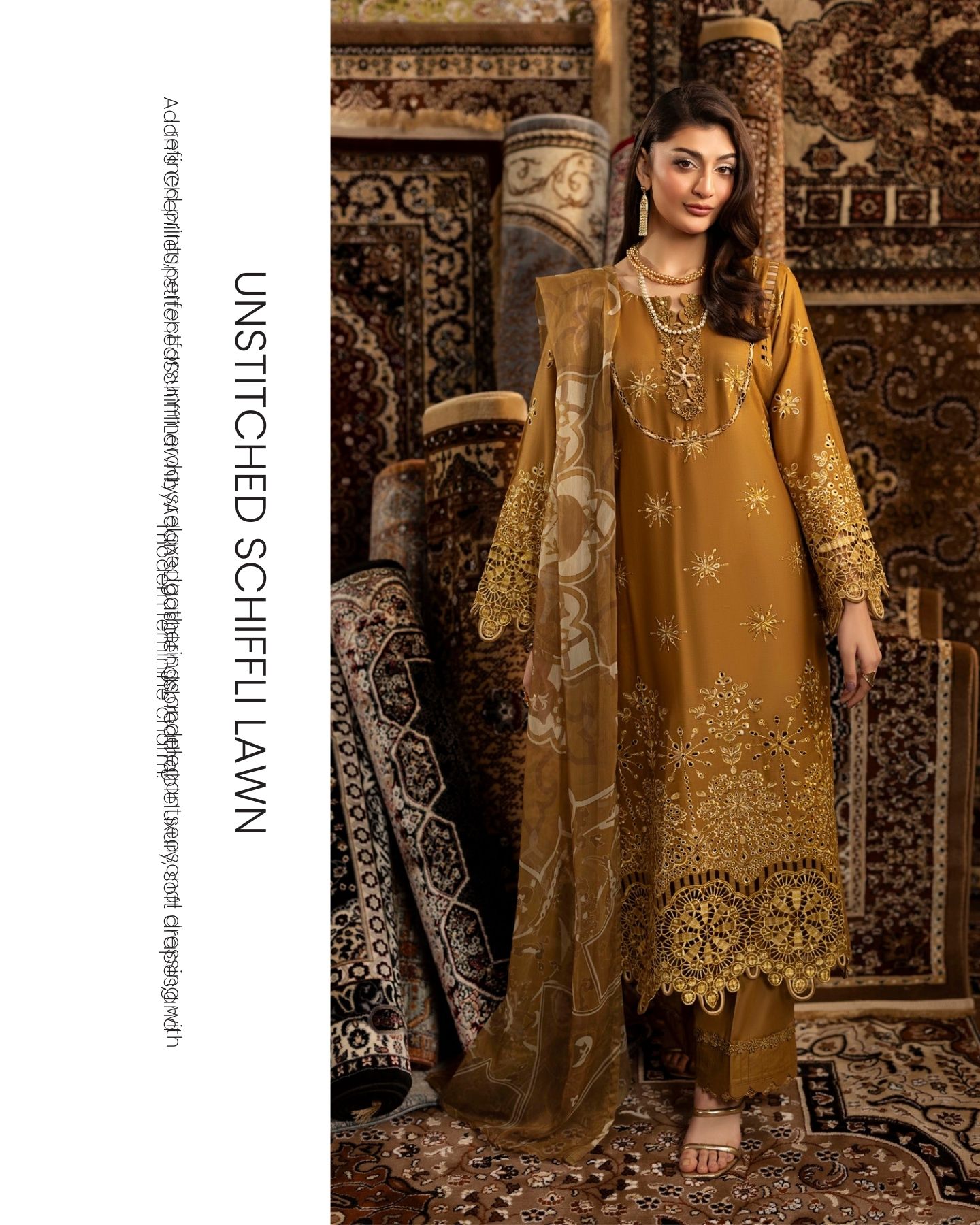 chenille luxury lawn design 03 PRICE 3,300 DESCRIPTION Schiffli Embroidered Lawn Front Schiffli Embroidered Lawn Back Schiffli Embroidered Lawn Sleeves Dyed Cotton Trouser Digitally Printed Bamber Chiffon Dupatta ( Include Laser Cut Embroidered Borders ) Buy Now