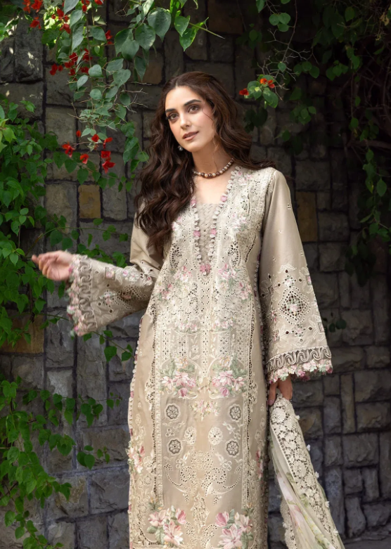 - Embroidered lawn with laserwork front panel: 1 piece