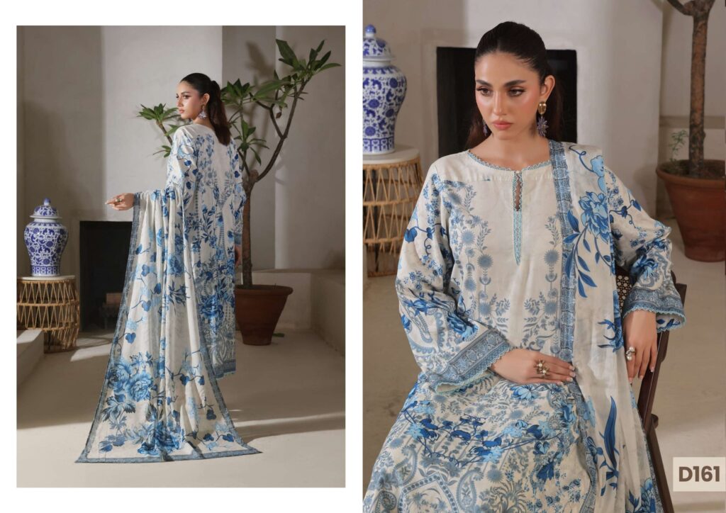 firdous solein prints design 161 PRICE 1,800 DESCRIPTION: Shirt: Printed Lawn Front, Back & Sleeves (3m)Dupatta: Printed Voile Dupatta (2.5m)Trousers: Dyed Cambric Trousers (2.5m Buy Now