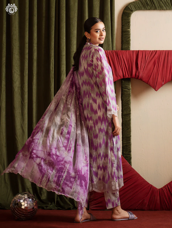 • Duppata: Digital Printed Bamber Chiffon Embroidered Cut-Work