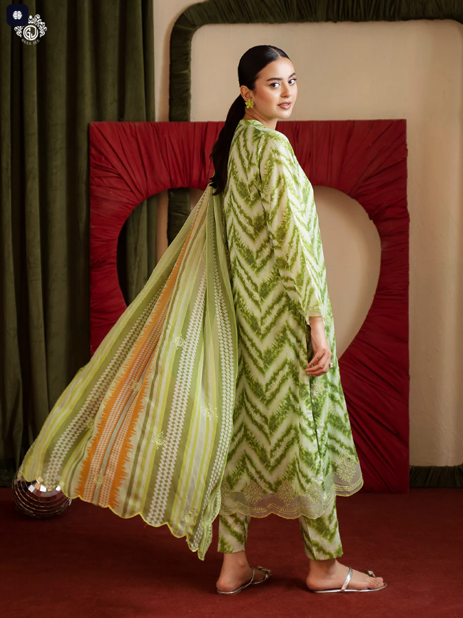 - Duppata: Digital Printed Bamber Chiffon Embroidered Cut-Work