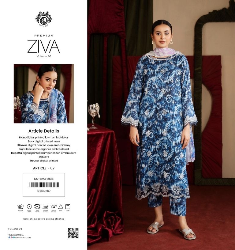 - Duppata: Digital Printed Bamber Chiffon Embroidered Cut-Work
