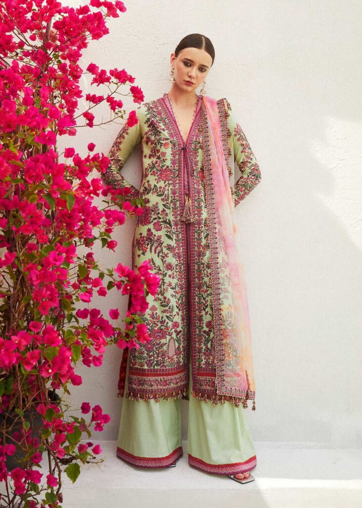 - Embroidered Front Open, Daman, Back Side Extension & Back Neck Border (Lawn) 7.50 Meters