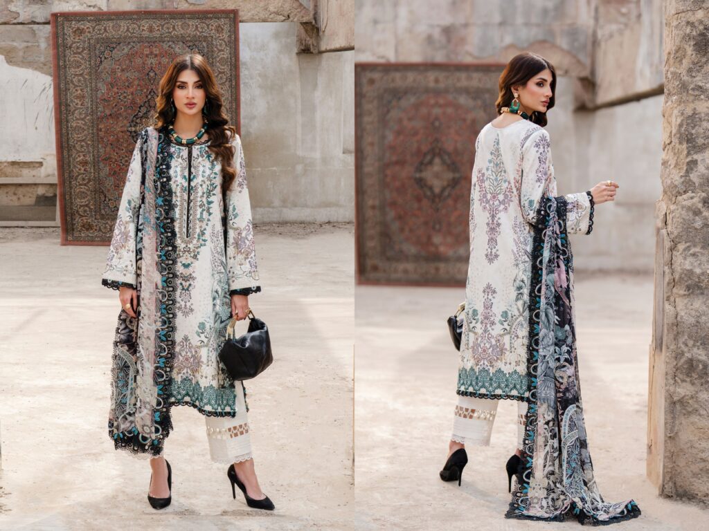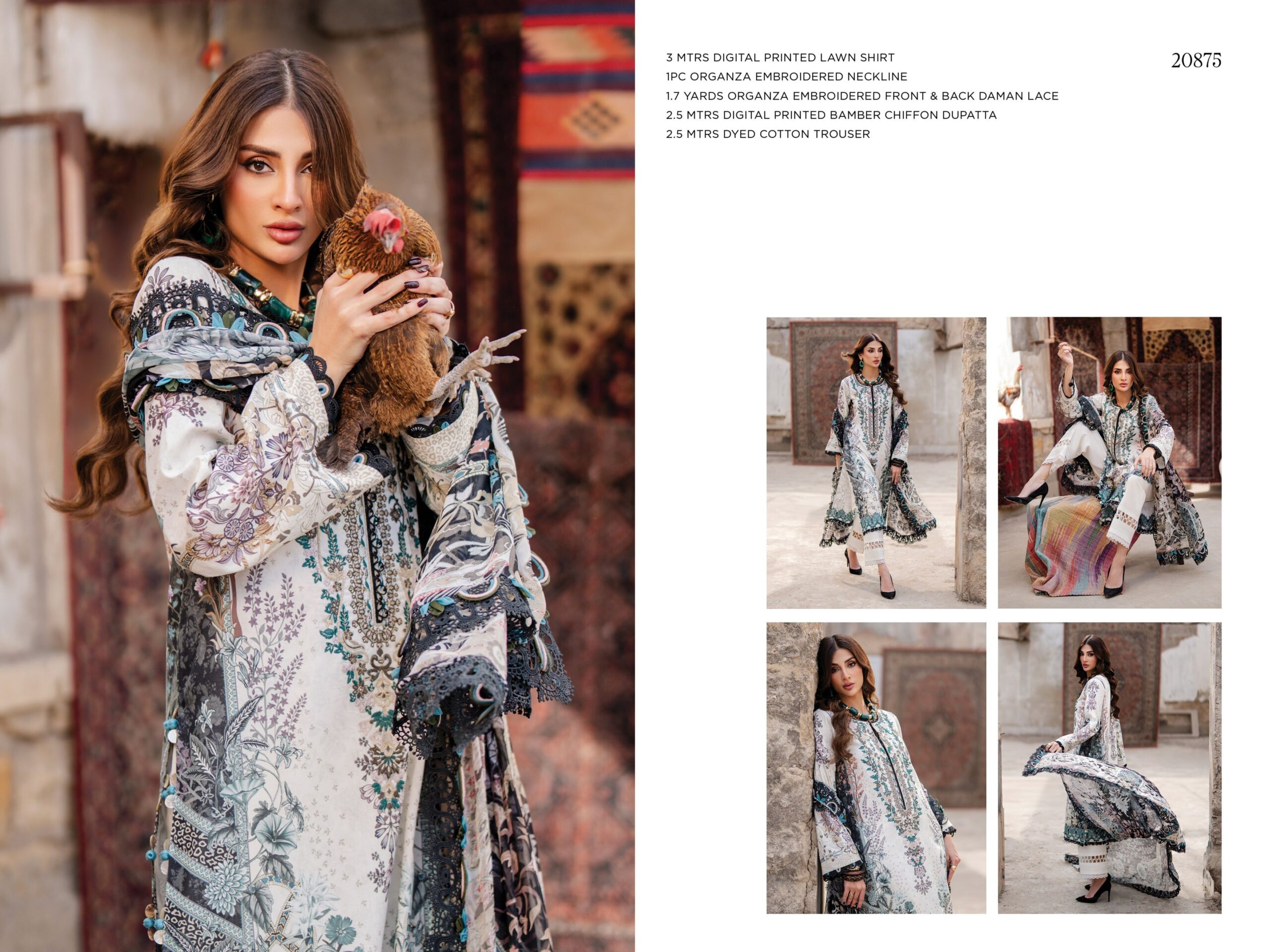 Jade Bliss 20875 Digital Printed Lawn ShirtOrganza Embroidered NeckLineOrganza Embroidered Front & Back Daman LaceDigital Printed Bamber Chiffon DupattaDyed Cotton TrouserPrice 2,600 Buy Now