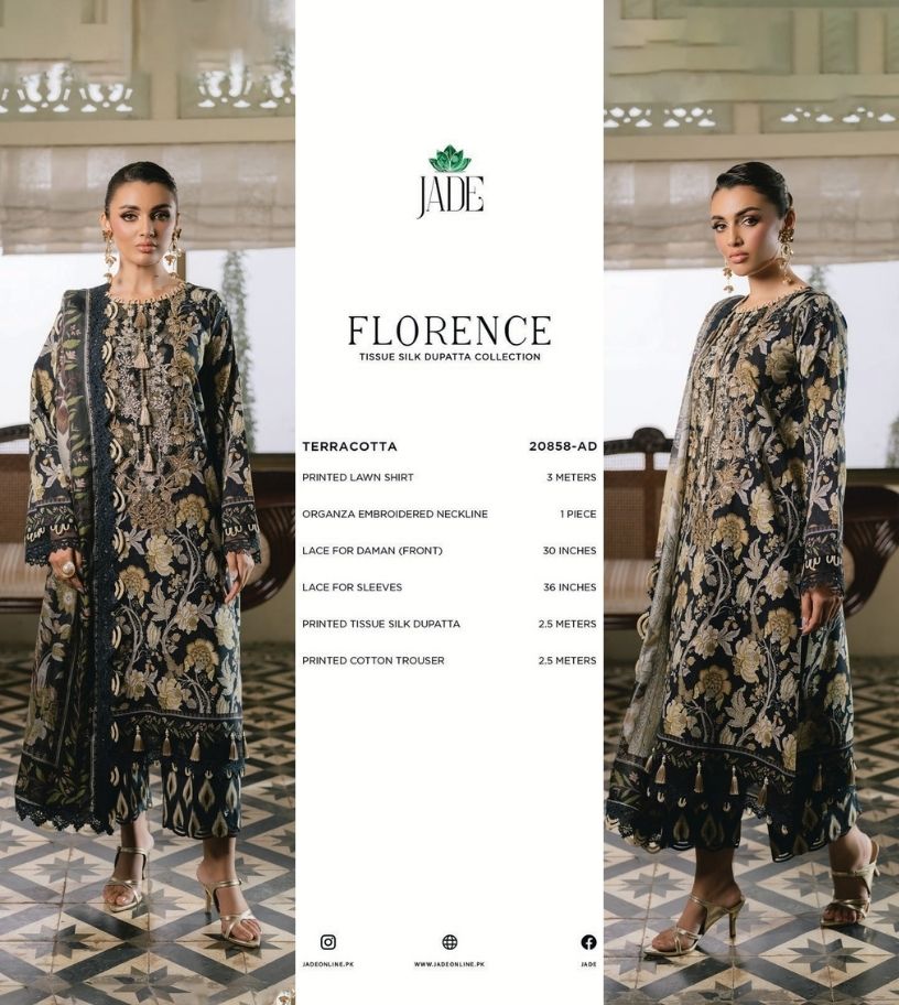 JADE FLORENCE LAWN WITH SILK DUPATTA DESIGN TERACOTTA