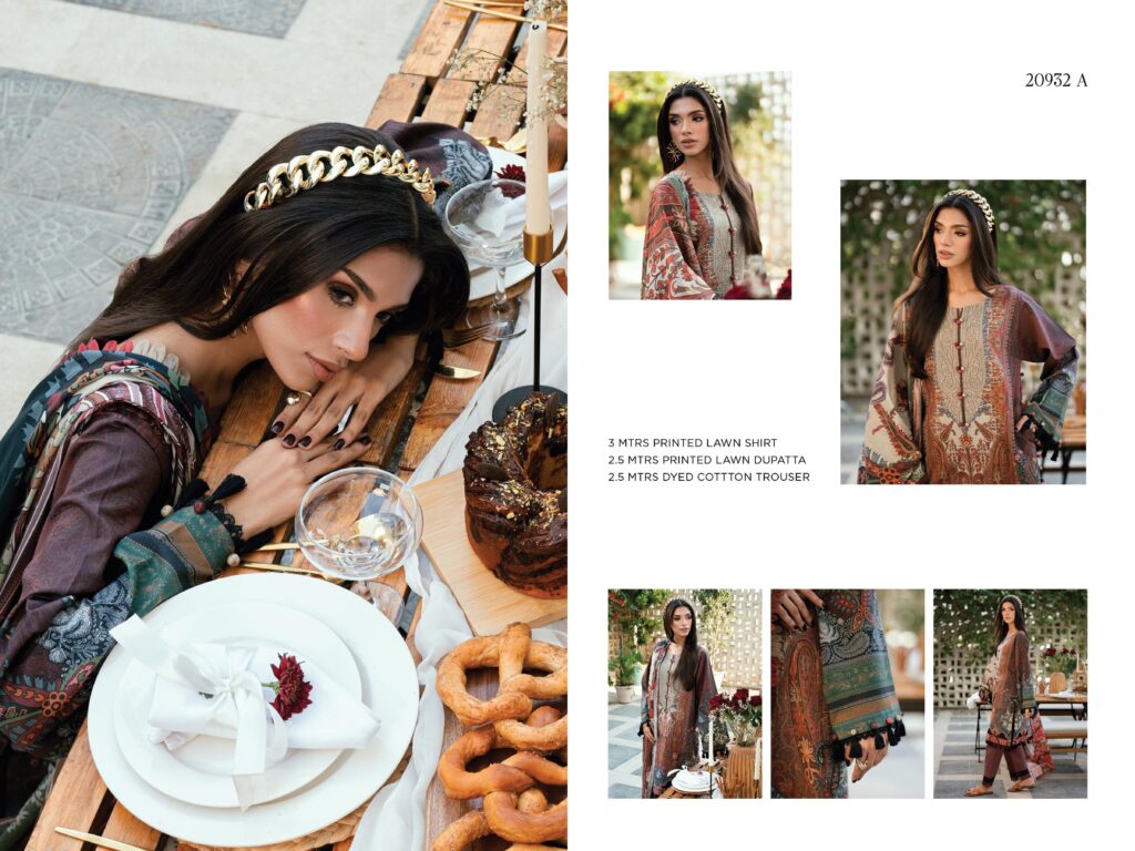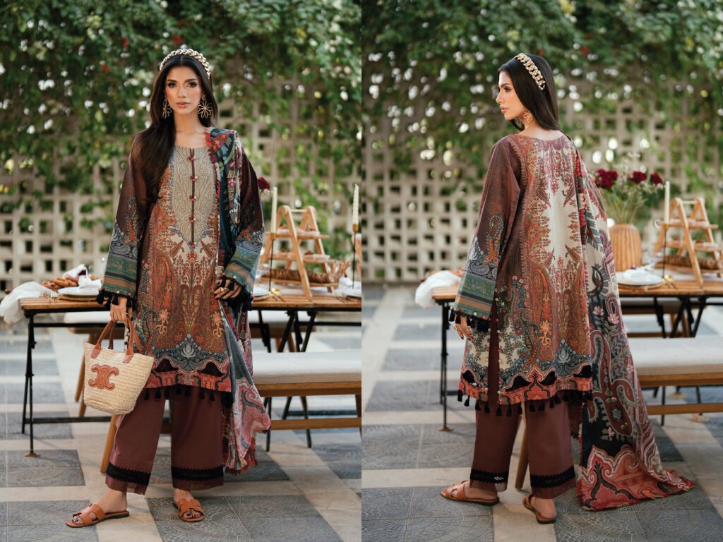 | Fabric: 3 METER DIGITAL PRINTED LAWN SHIRT 2.5 ΜΕTER DIGITAL PRINTED LAWN DUPATTA 2.5 ΜΕΤTER DYED COTTON TROUSER |