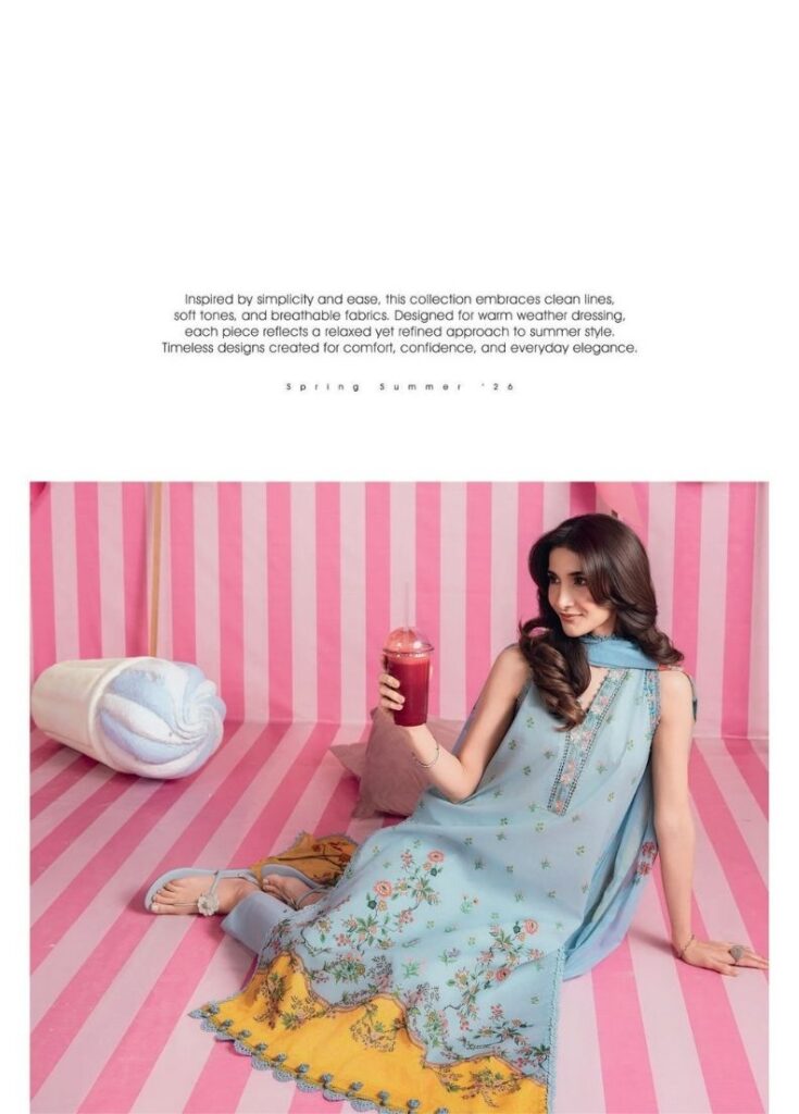 M BASICS BY MARIA B UNSTITCHED’26 1B PRICE 2,500 DESCRIPTION– Printed Lawn Shirt 1.8mDyed Cambric Trouser 1.5mPrinted Chiffon Dupatta 2.5mEmbroidered Organza Patti IEmbroidered Organza Patti II SIZE- Unstitched fabric / Unstitched Dress Material Buy Now