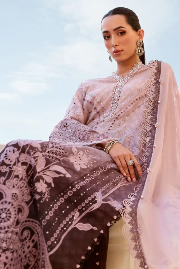 Embroidered Jacquard Lawn Front With Stickon Studs