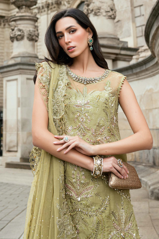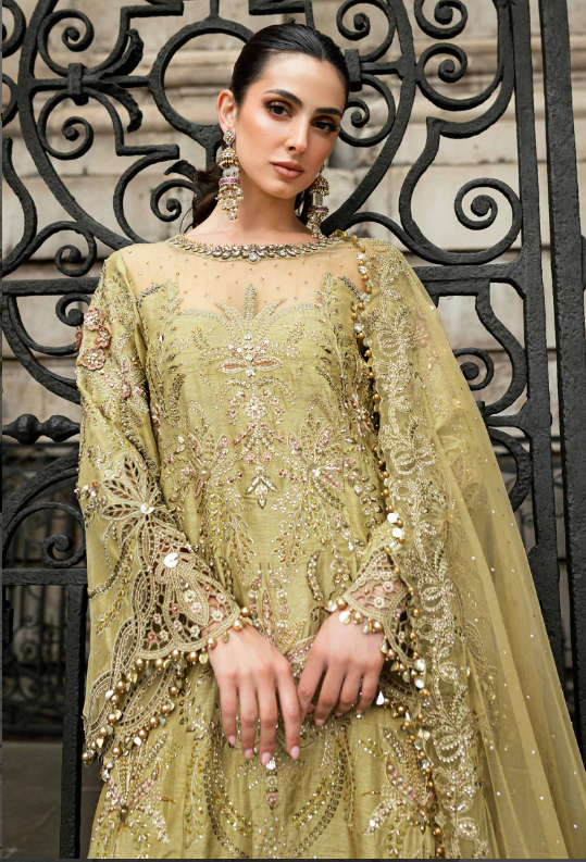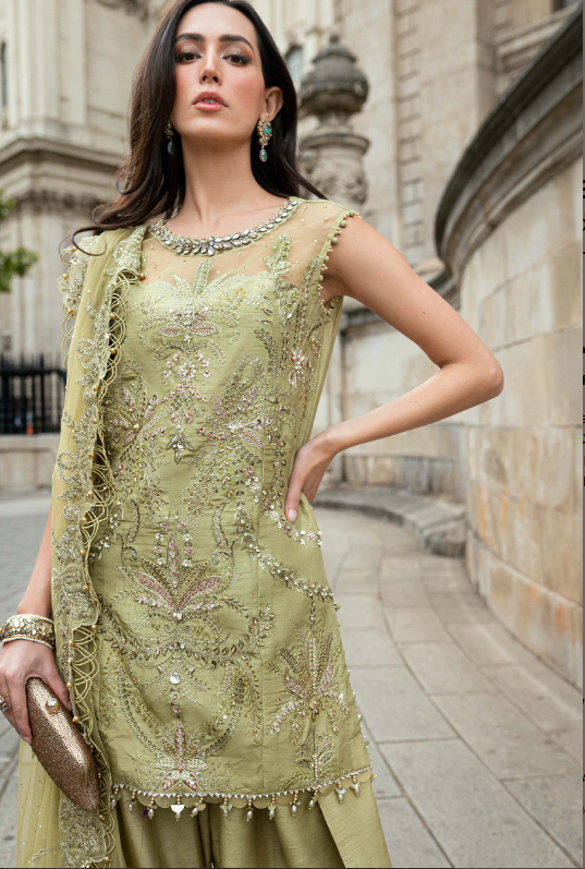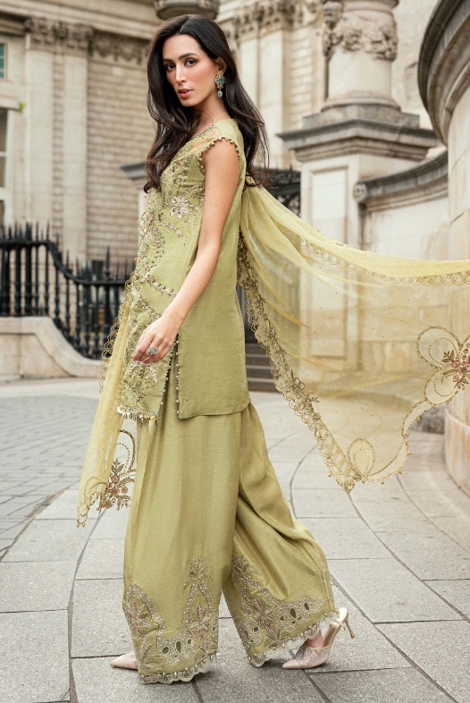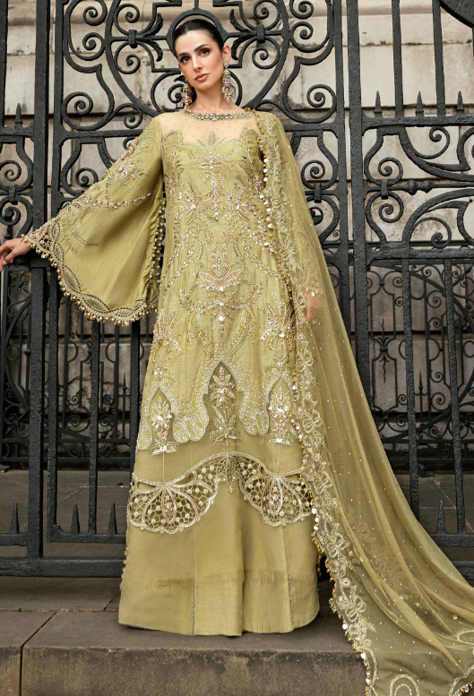 MARIA B Soiree Unstitched Embroidered Raw Silk Suit WF 0908 Olive Green