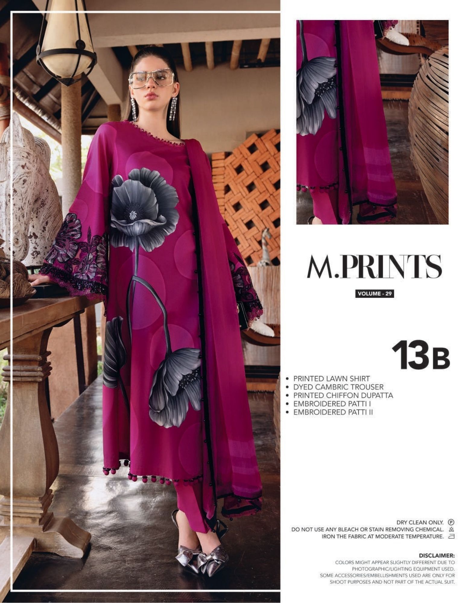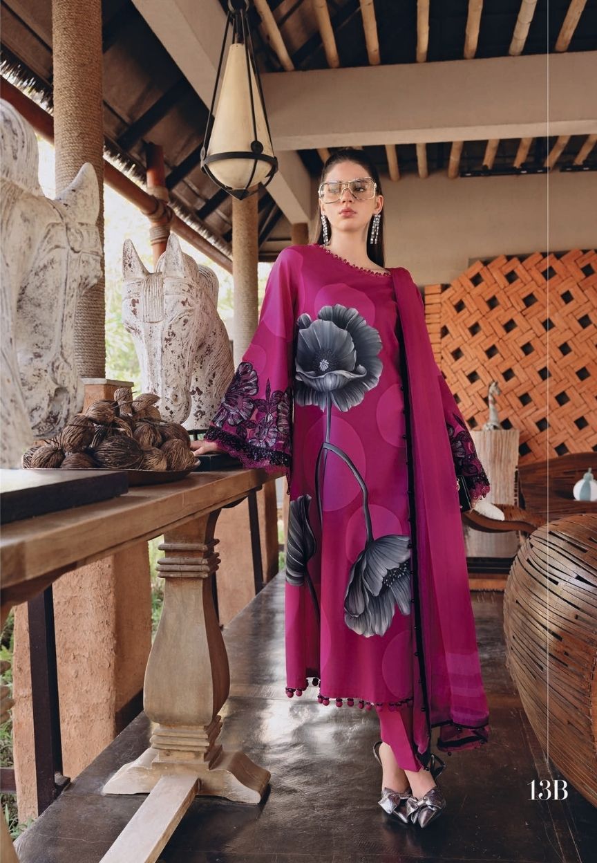 mariab mprints lawn design 13B PRICE 4,300 Description Color: PinkShirtPrinted Lawn ShirtEmbroidered Patti IEmbroidered Patti IITrouserDyed Cambric TrouserDupattaPrinted Chiffon DupattaNote: Dry Clean Only Buy Now