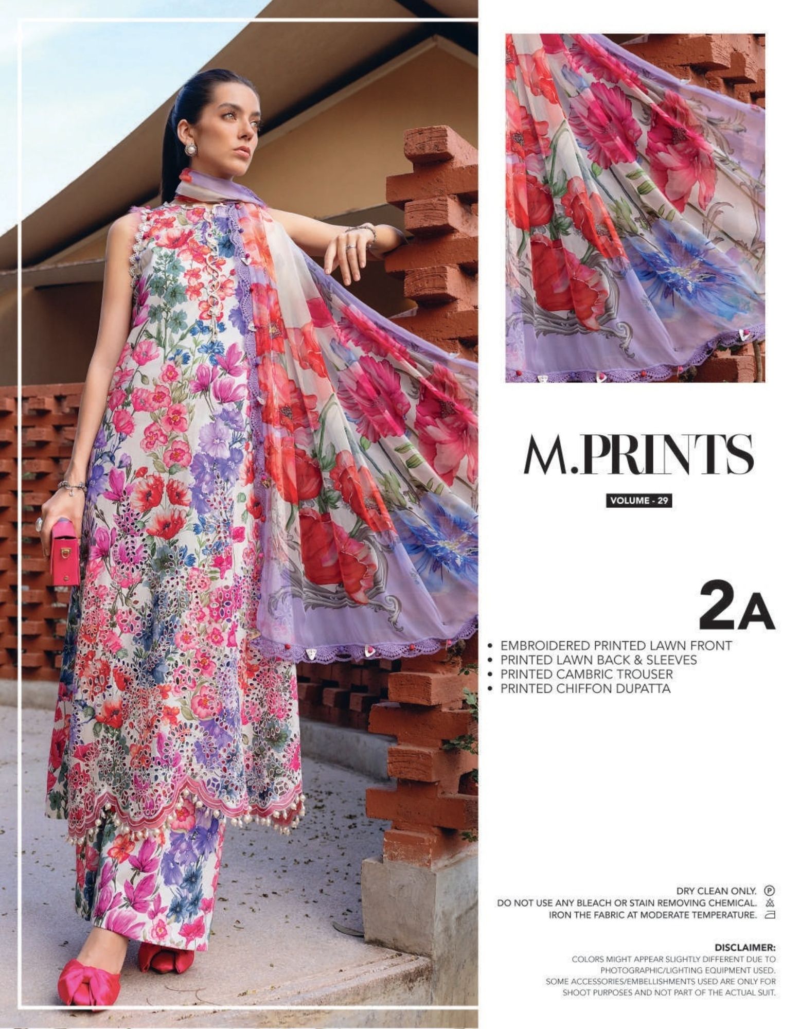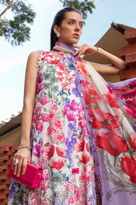mariab mprints lawn design 2A PRICE 4,300 Description Color: WhiteShirtEmbroidered Printed Lawn FrontPrinted Lawn Back & SleevesTrouserPrinted Cambric TrouserDupattaPrinted Chiffon DupattaNote: Dry Clean Only Buy Now