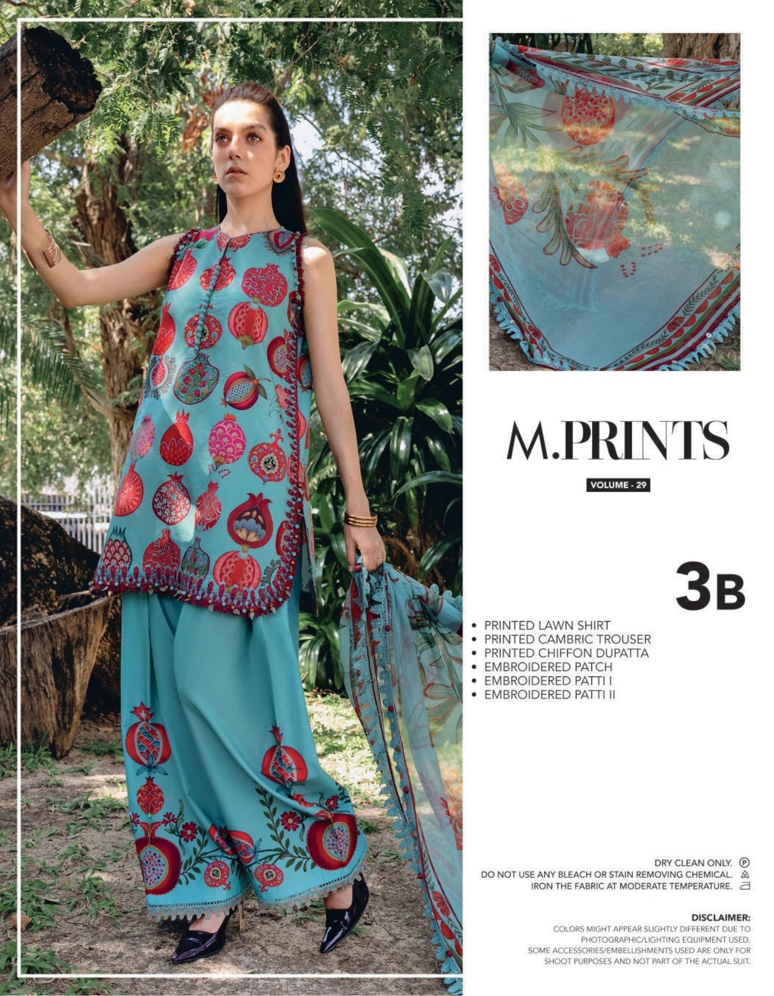 mariab mprints lawn design 3B PRICE 4,300 Description Color: Sea GreenShirtPrinted Lawn ShirtEmbroidered PatchEmbroidered Patti IEmbroidered Patti IITrouserPrinted Cambric TrouserDupattaPrinted Chiffon DupattaNote: Dry Clean Only Buy Now
