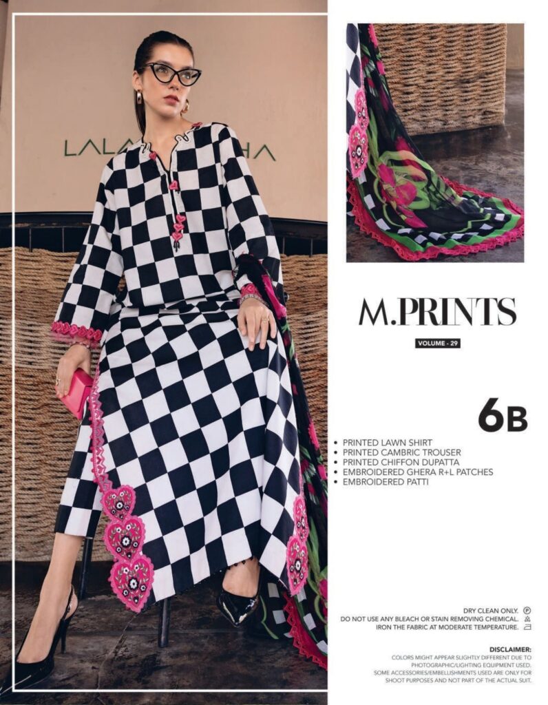 mariab mprints lawn design 6B PRICE 4,300 Description Color: Off-White & BlackShirtPrinted Lawn ShirtEmbroidered Ghera R+L PatchesEmbroidered PattiTrouserPrinted Cambric TrouserDupattaPrinted Chiffon DupattaNote: Dry Clean Only Buy Now
