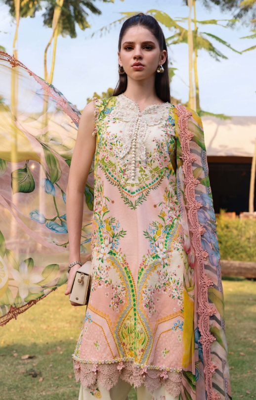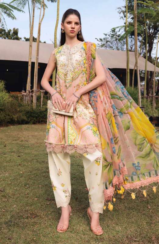 mariab mprints lawn design 8A PRICE 4,300 Description Color: Lemon YellowShirtPrinted Lawn ShirtEmbroidered Neck Patch & 3D MotifEmbroidered PattiTrouserPrinted Cambric TrouserDupattaPrinted Chiffon DupattaNote: Dry Clean Only Buy Now