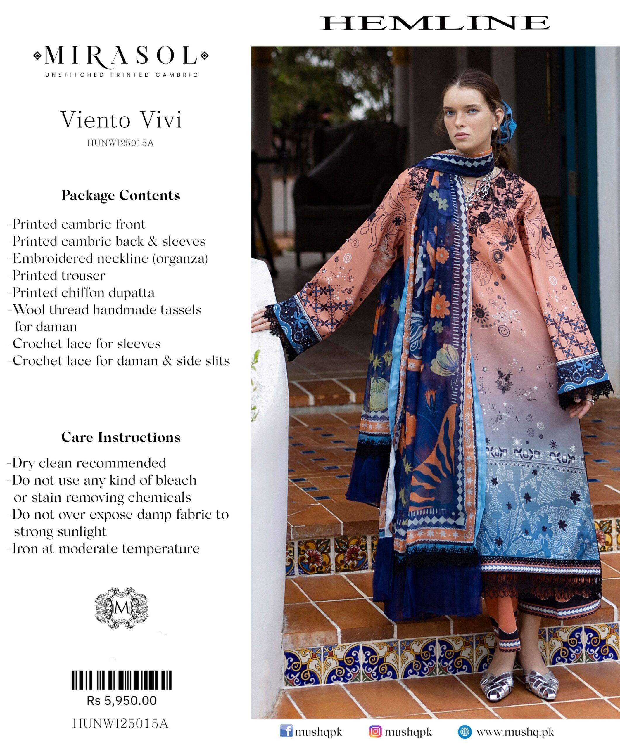 • Printed cambric front