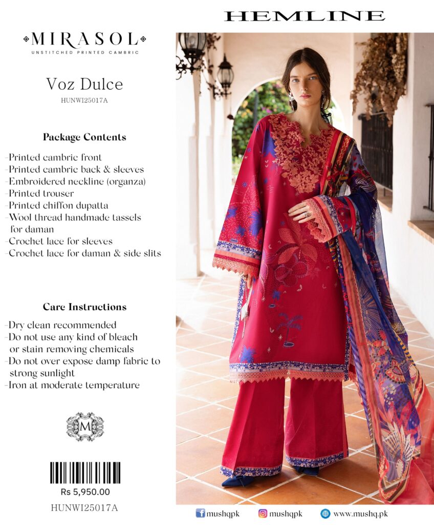 - Printed cambric back & sleeves