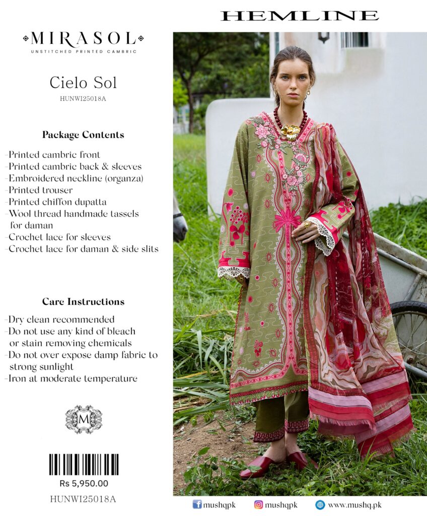 - Printed cambric back & sleeves