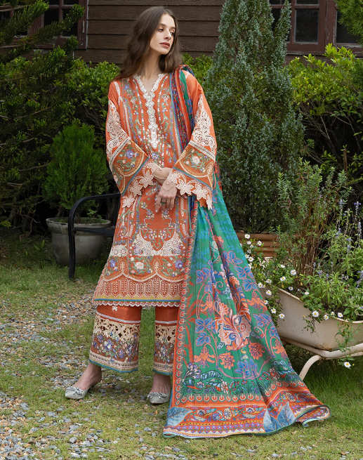 • Chikan embroidered lawn side right panel
