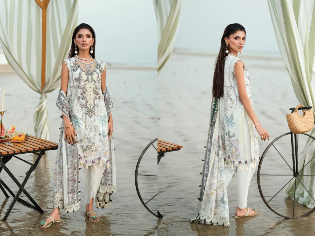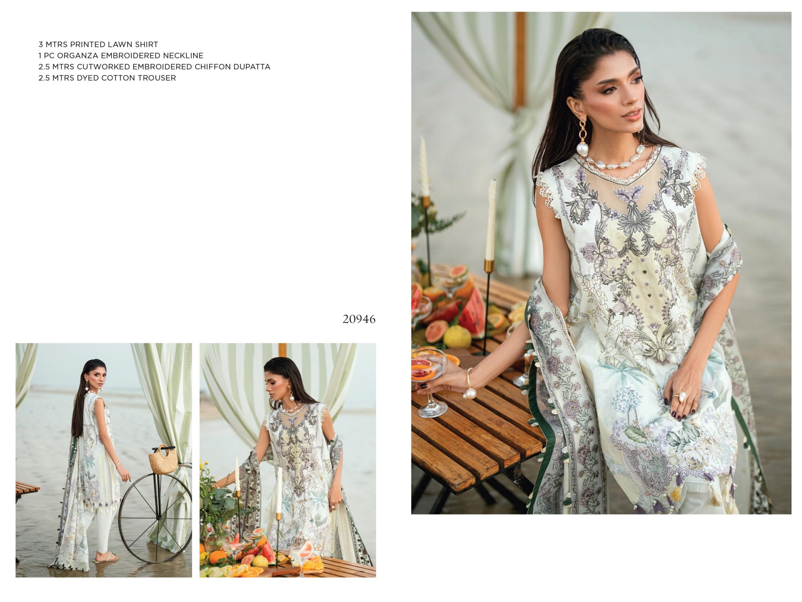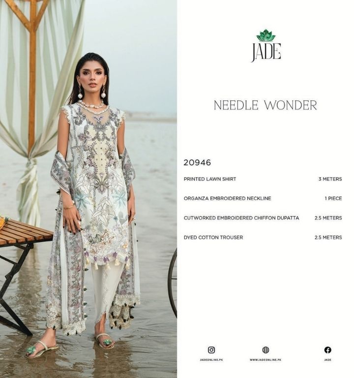 needle wonder 20946 PRICE 2,950 Description 100% Original Guaranteed 3M Printed Lawn Shirt2.5M Cutwork Embroidered Chiffon Dupatta2.5M Dyed Cotton Trouser1PC Organza Embroidered Neckline Buy Now