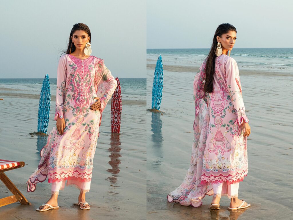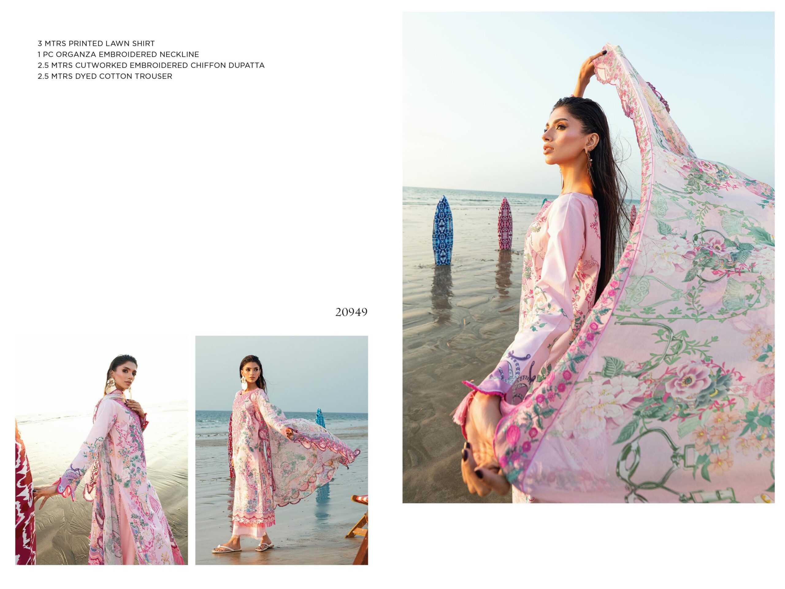 needle wonder 20949 PRICE 2,950 Description 100% Original Guaranteed 3M Printed Lawn Shirt2.5M Cutwork Embroidered Chiffon Dupatta2.5M Dyed Cotton Trouser1PC Organza Embroidered Neckline Buy Now