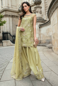 MARIA B Soiree Unstitched Embroidered Raw Silk Suit WF 0908 Olive Green