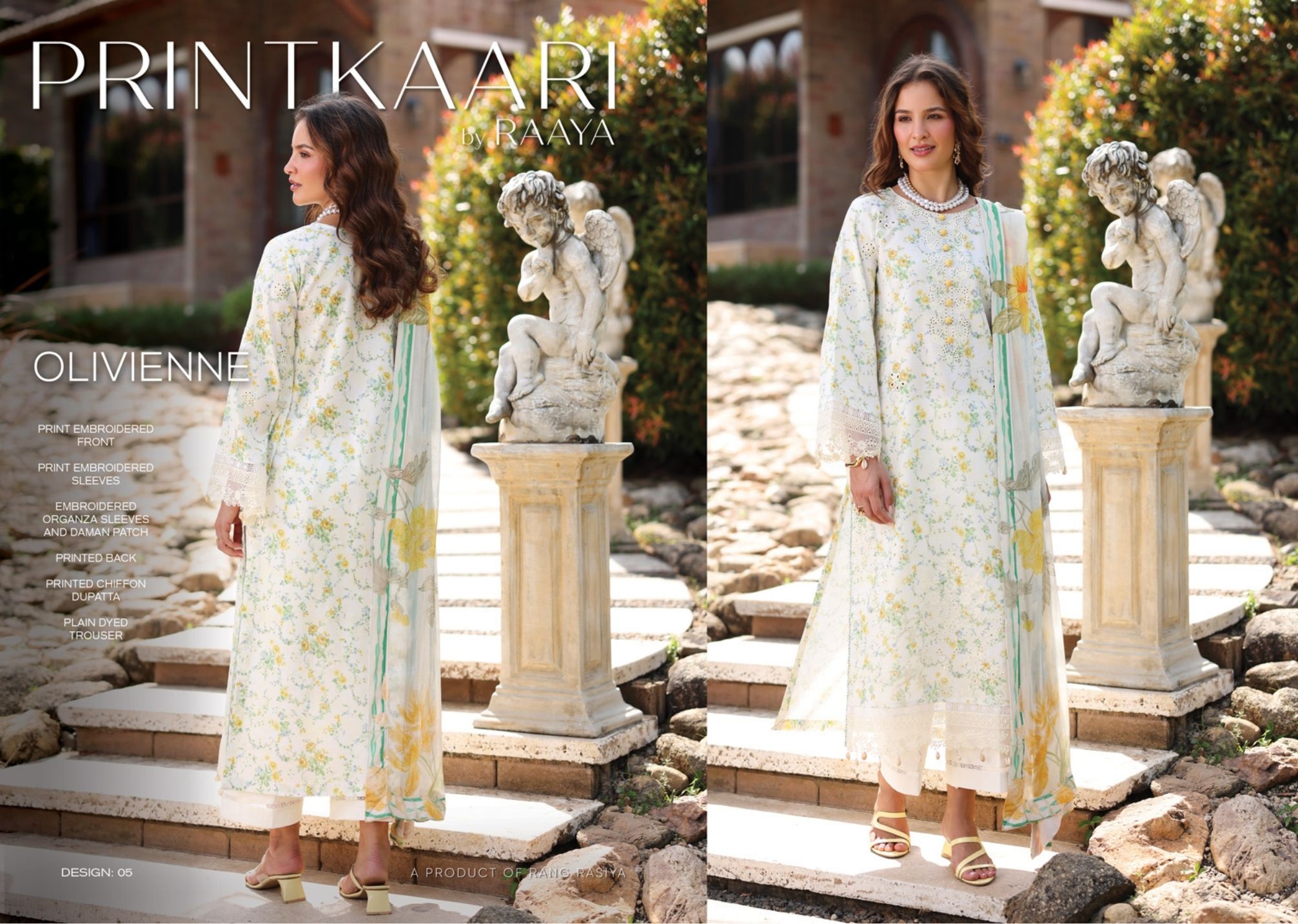 Printkaari By Raaya Luxury Print Emb Lawn With Chiffon Dupatta-3PC