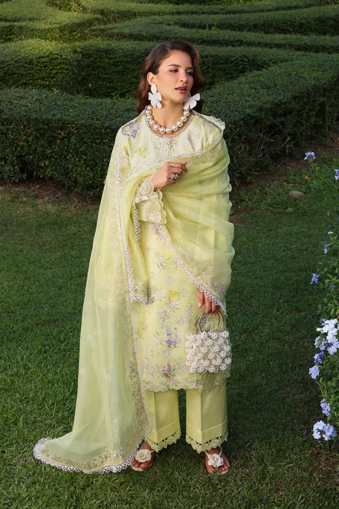 | Fabric: Printed Embroidered Lawn Front 48 Inches Printed Lawn Back + Sleeve 74 Inches Dyed Embroidered Organza Front Corner Right Side 1 Piece Dyed Embroidered Organza Front Corner Left Side 1 Piece Dyed Embroidered Organza Sleeve Border 40 Inches Dyed Embroidered Textured Dupatta 2.5 Meters Dyed Embroidered Organza Dupatta 2 Side Border 80 Inches Dyed Cotton Trouser 2.5 Meters |