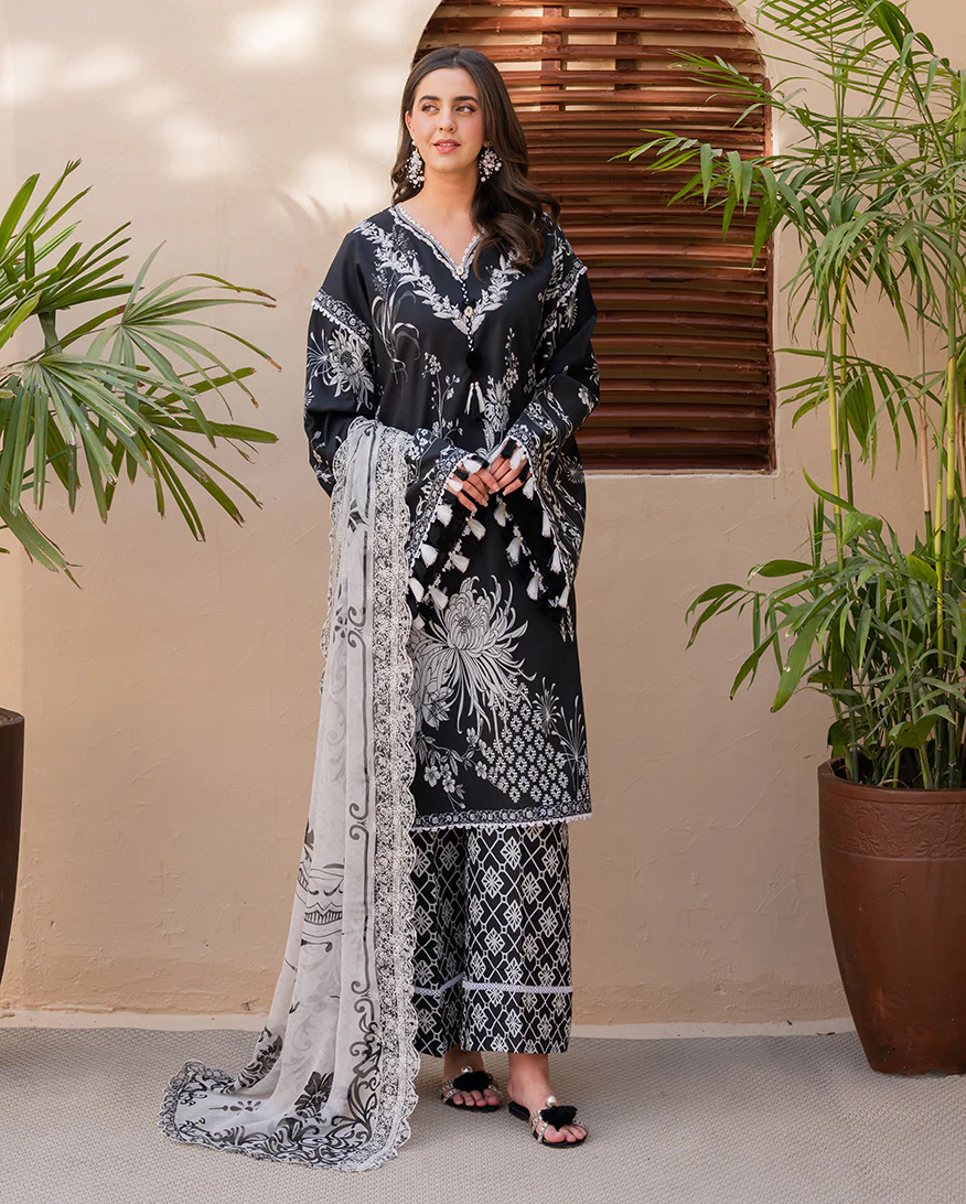 ROHEEENAZ SUMMER IN BLOOM DESIGN WILDFLOWER PRICE 2,600 Shirt • Printed lawn front• Printed lawn back & sleeves• Embroidered neckline (organza) Trouser • Printed trouser Dupatta • Embroidered printed chiffon dupatta Buy Now