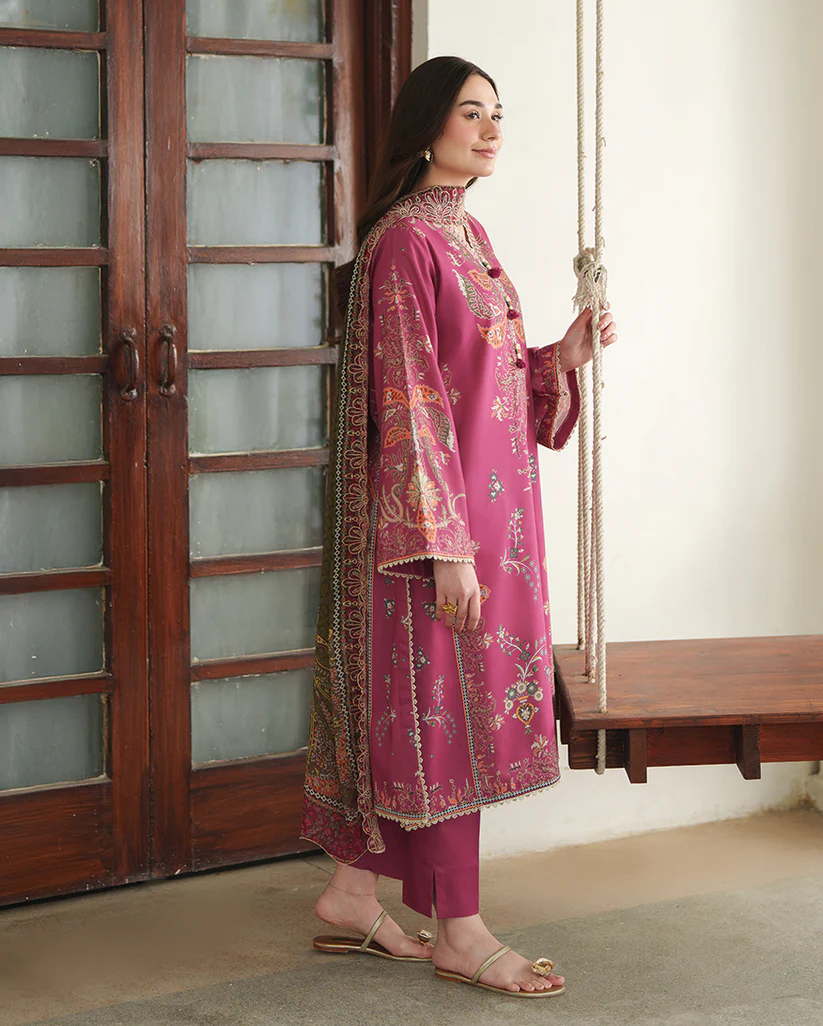 ROHEENAZ WHISPERED FLORALS LAWN DESIGN FLORAL GARDEN PRICE 2,600 Shirt • Printed lawn front• Printed lawn back & sleeves• Embroidered neckline (organza) Dupatta • Embroidered printed chiffon dupatta Trouser • Printed trouserSize: Unstitched Buy Now