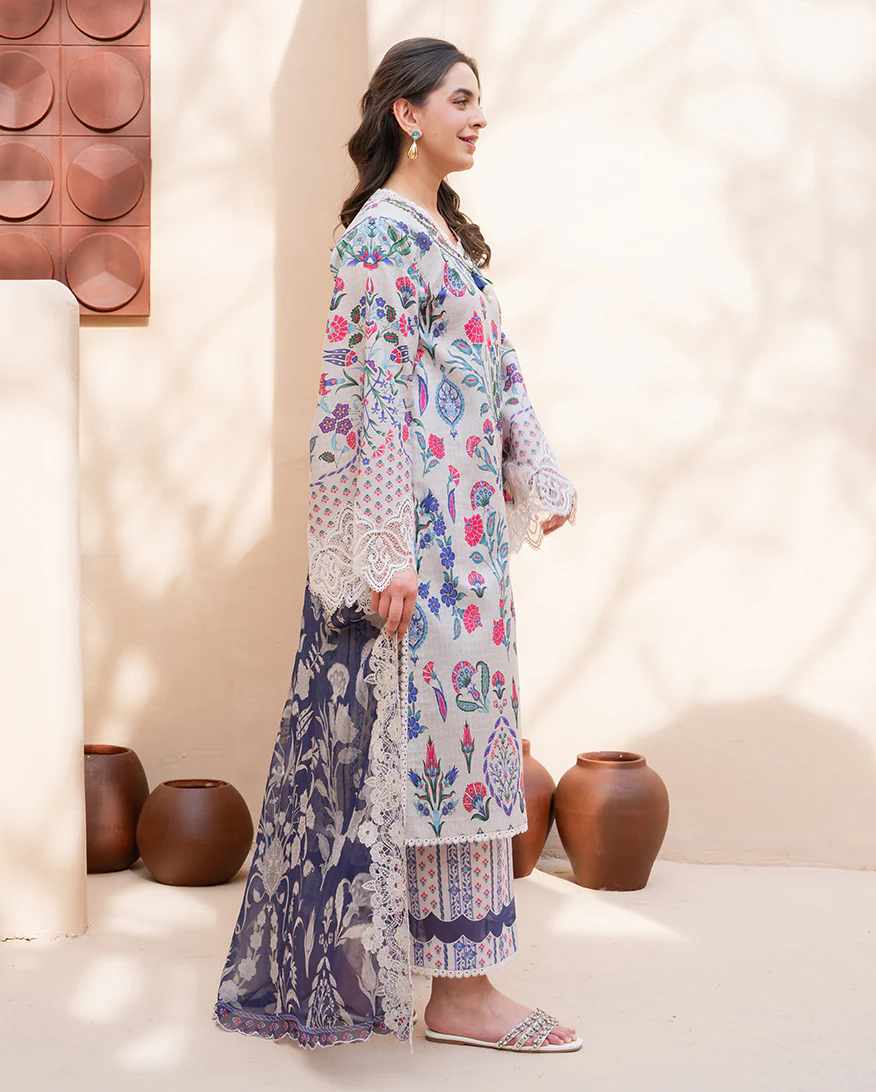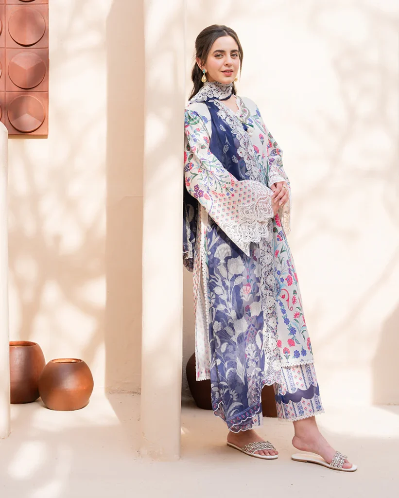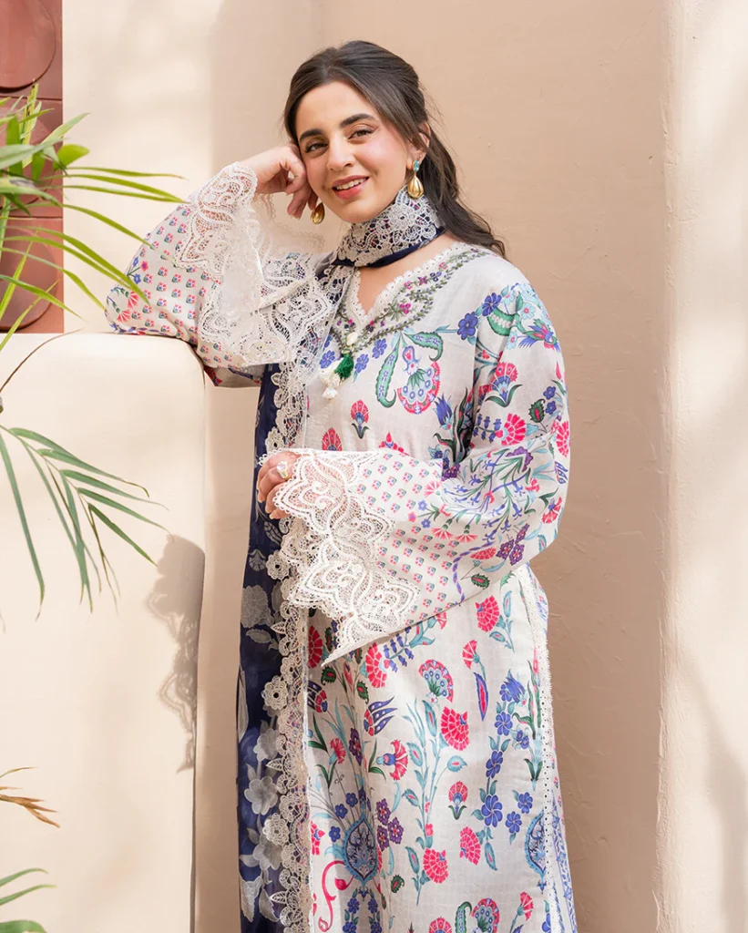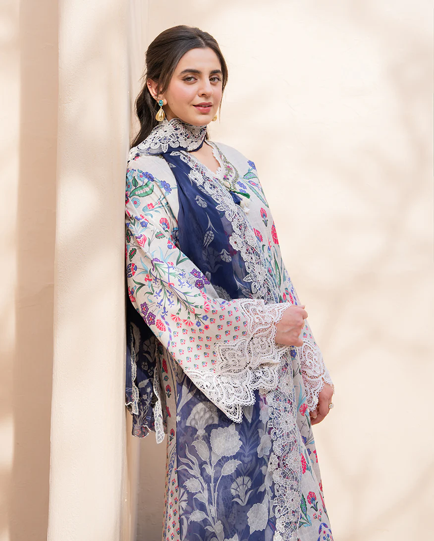 ROHENAZ SUMMER IN BLOOM LAWN DESIGN ROSETTE PRICE 2,600 Shirt • Printed lawn front• Printed lawn back & sleeves• Embroidered neckline (organza) Trouser • Printed trouser Dupatta • Embroidered printed chiffon dupatta Buy Now