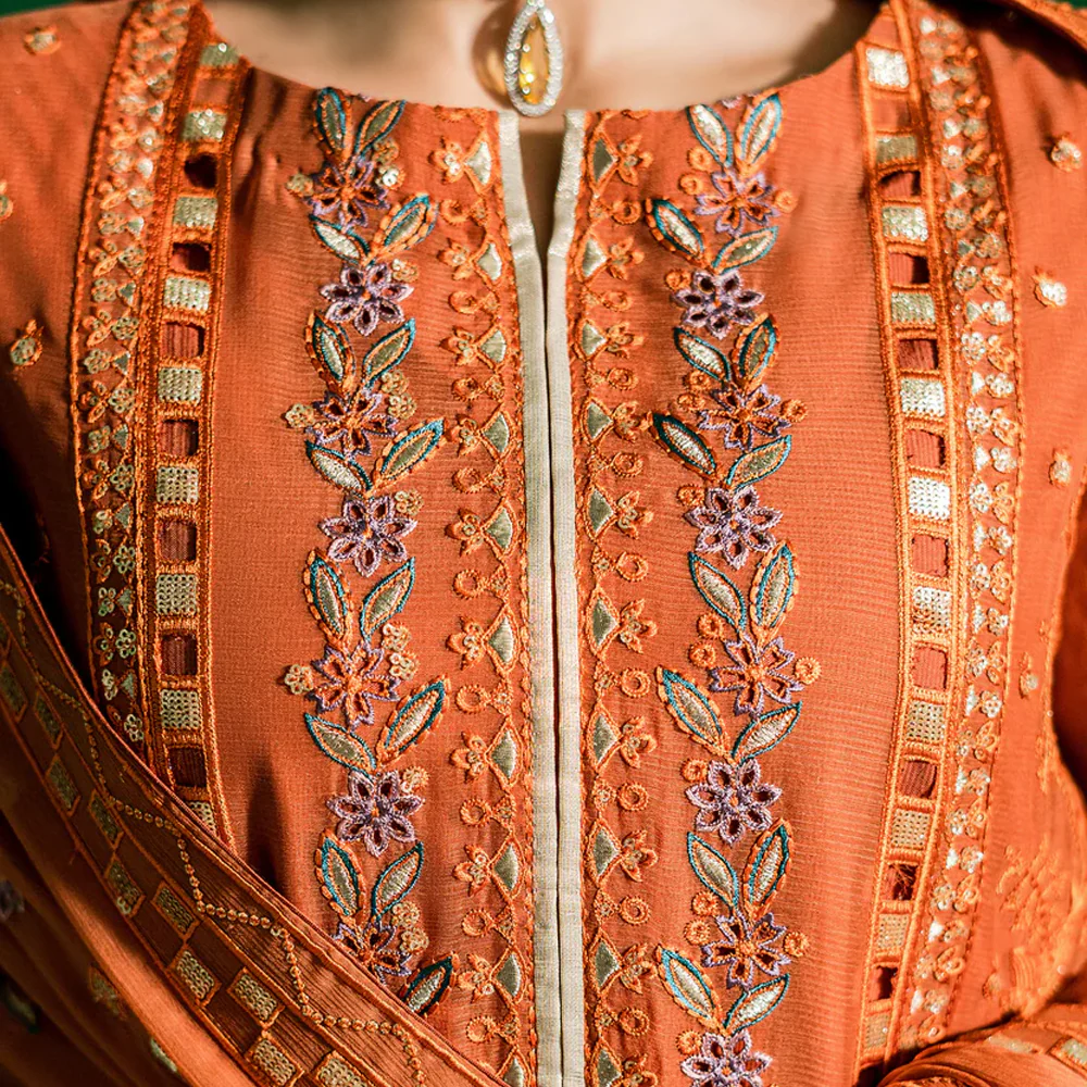 – Embroidered weightless chiffon four side