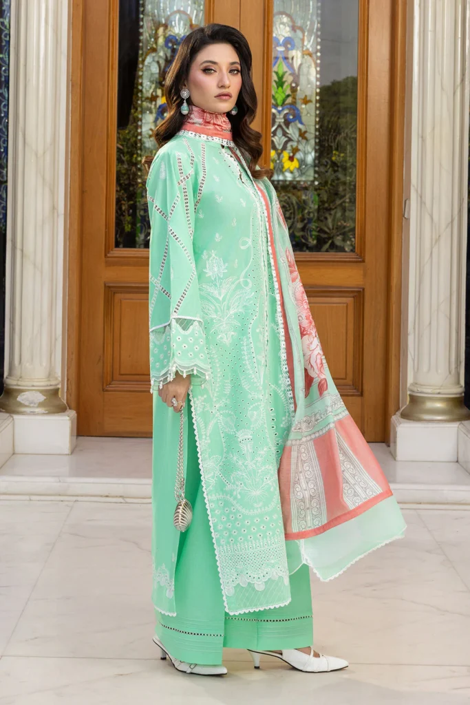 | Fabric: 2.5M Dyed Embroidered Cambric Shirt 2.5M Digital Printed Bamber Chiffon Dupatta 2.5M Dyed Cambric Trouser Elevate your wardrobe with this exquisite 3-piece unstitched ensemble featuring traditional chikankari embroidery. Crafted from premium cambric for the shirt and shalwar, paired with a luxurious monar dupatta, this collection showcases refined craftsmanship. The sophisticated mint green hue offers versatility for both casual and formal occasions. Each piece is meticulously embroidered with delicate detailing, allowing you to customize the fit while maintaining authentic elegance. Perfect for those who appreciate quality fabrics and timeless design. |