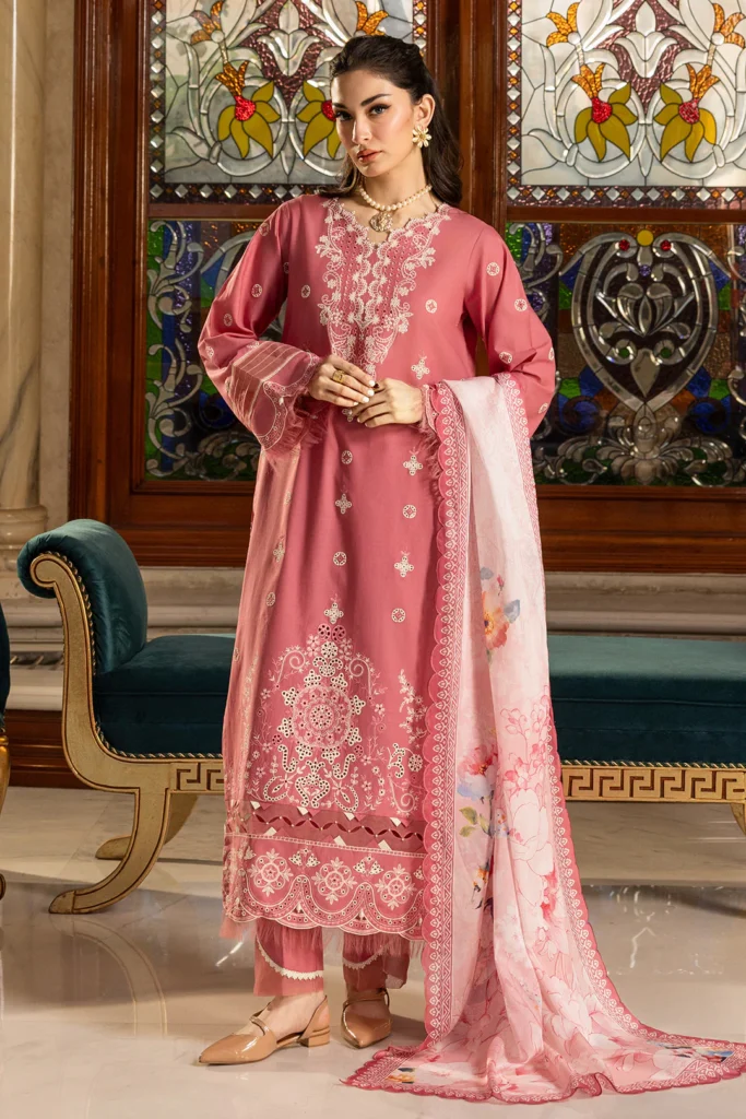 | Fabric: 2.5M Dyed Embroidered Cambric Shirt 2.5M Digital Printed Tissue Silk Dupatta 2.5M Dyed Cambric Trouser This exquisite three-piece unstitched ensemble showcases traditional chikankari embroidery in a sophisticated mauve palette. The cambric shirt and shalwar provide a comfortable, breathable foundation, while the tissue silk dupatta adds an elegant drape and luxurious finish. Perfect for creating a refined, coordinated look with personalized tailoring that reflects your individual style and preferences. |